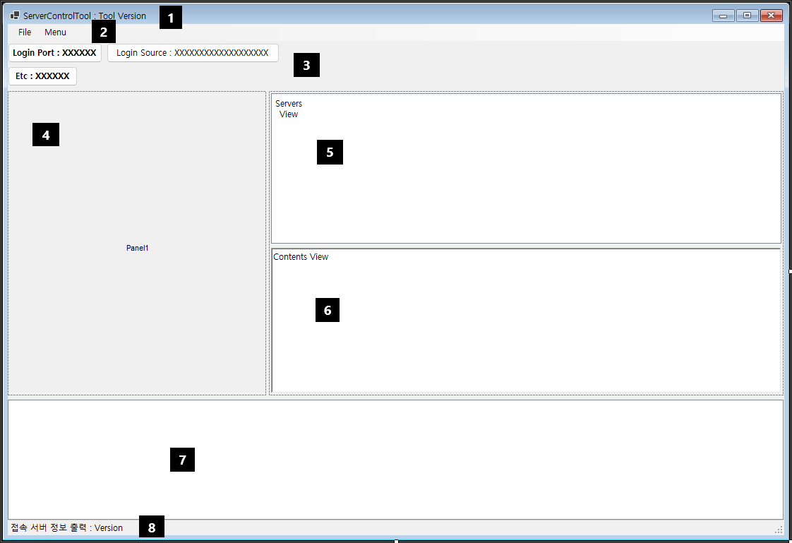 - 팝업 메뉴 : 서버 프로세스 제어 기능 목록, 컨텐츠 정보, 컨텐츠 제어 목록 출력